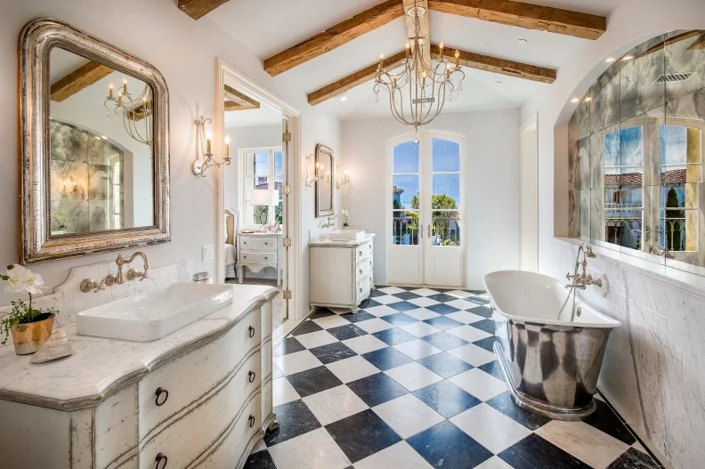 Expertly laid large-format tile in a bathroom and laundry room by the Lusitano Home Remodeling team.